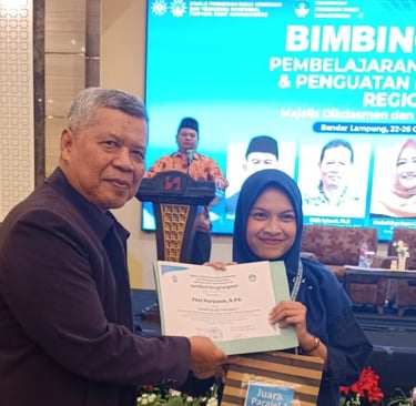 METRO – Dalam kegiatan Bimbingan Teknis Pembelajaran Mendalam, Koding AI, dan Pendidikan Karakter yang diselenggarakan oleh Majelis Dikdasmen dan PNF Pimpinan Wilayah Muhammadiyah (PWM) Lampung bekerja sama dengan Kementerian Dikdasmen RI di Bandarlampung, 22–26 Oktober 2025, Fitri Nurjanah, guru SMA Muhammadiyah 2 Metro, berhasil meraih piagam penghargaan sebagai Peserta Terbaik I.